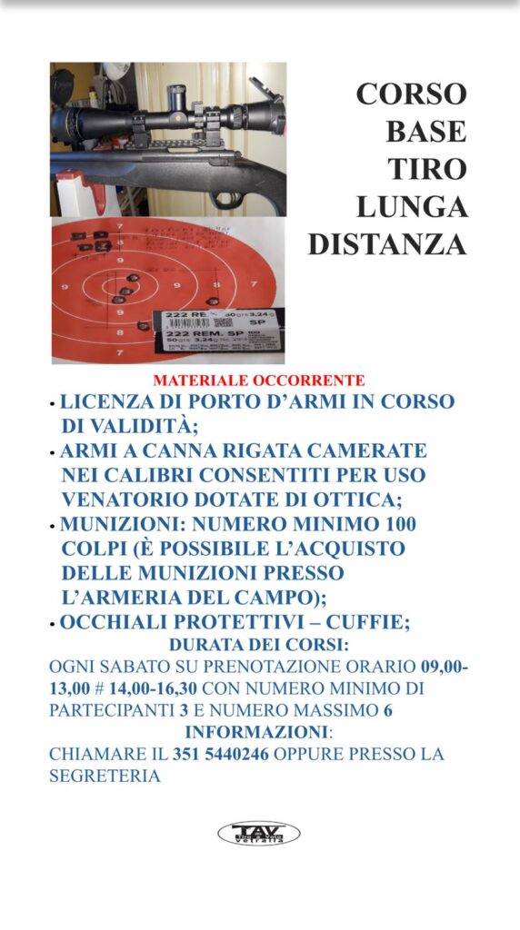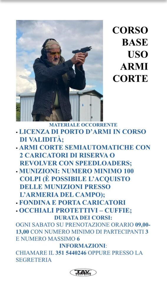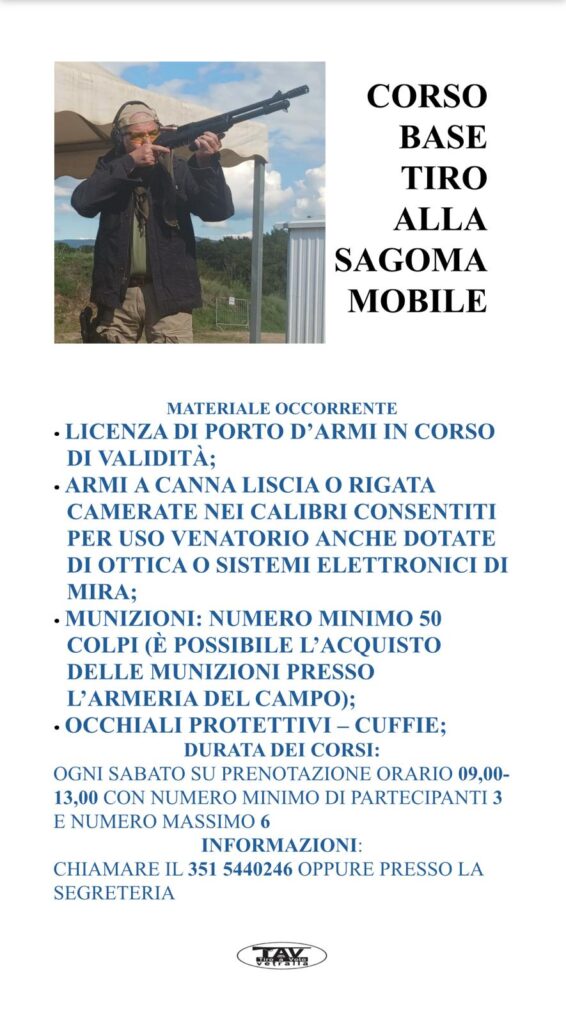 Si organizzano corsi di tiro alla sagoma mobile, corsi base ricarica, corsi di tiro a lunga distanza, corsi base uso armi corte. Per info 351 5440246. 7 Febbraio 20258 Febbraio 2025 Alessio